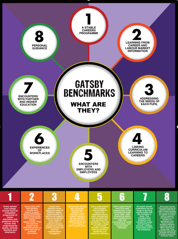 ‘The overall aim of Careers Education and IAG is to enable all students to make and implement well-informed and realistic decisions and successfully manage change and transition points by following the 8 Gatsby Benchmarks’.