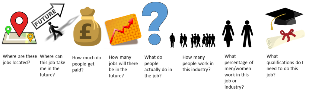 LMI helps to break down the complex ‘world of work’– ranging from descriptions of different careers, their entry routes, promotional prospects, salaries paid, skills and qualifications needed, etc. Crucially for young people, LMI also covers future demand – what kinds of jobs will be in demand after leaving school and what kinds of skills will be needed.