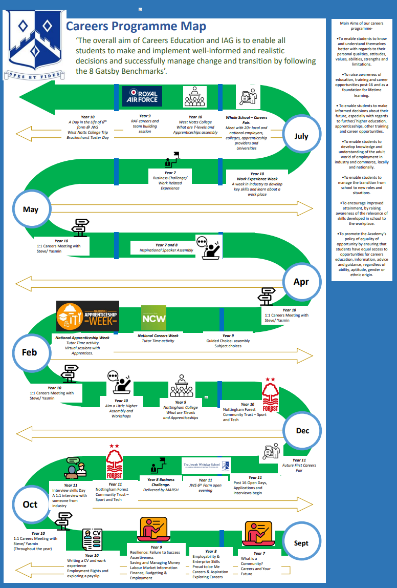 The Joseph Whitaker School uses the 8 Gatsby Benchmarks to structure, implement and evaluate the careers programme offered to students.